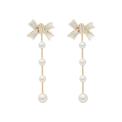 女性のためのランディボウパールタッセルイヤリング新しいトレンド925シルバーピンツーウェアイヤリング